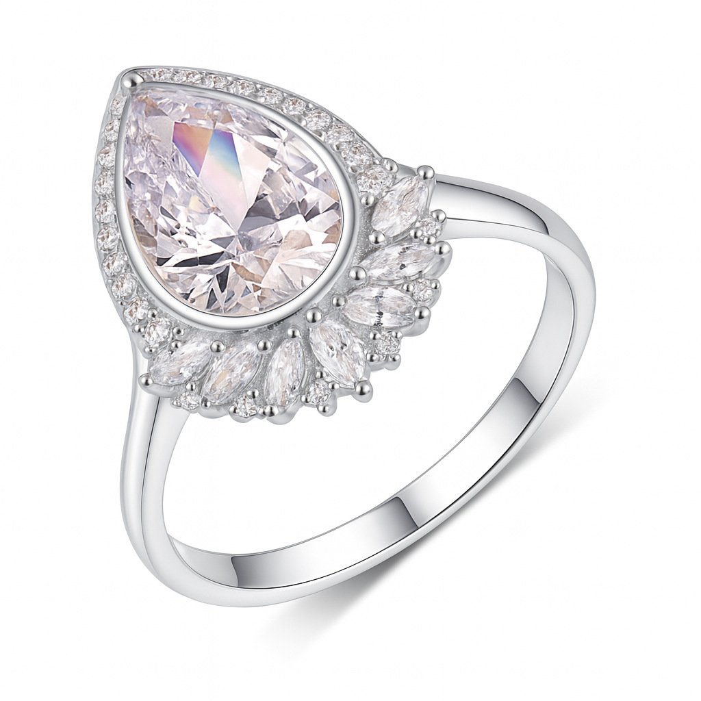 S925 silver vintage teardrop-shaped moissanite 4ct diamond ringS925 silver vintage teardrop-shaped moissanite 4ct diamond ring